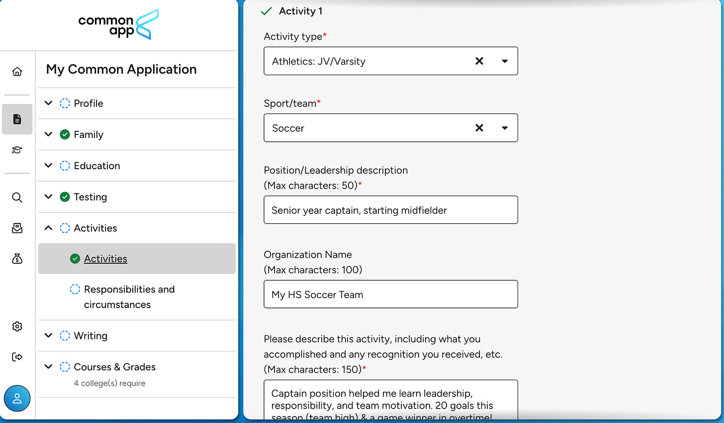 In the ‘Activities’ section of the Common App you’ll be asked to provide information about how you spend your time outside of the classroom.