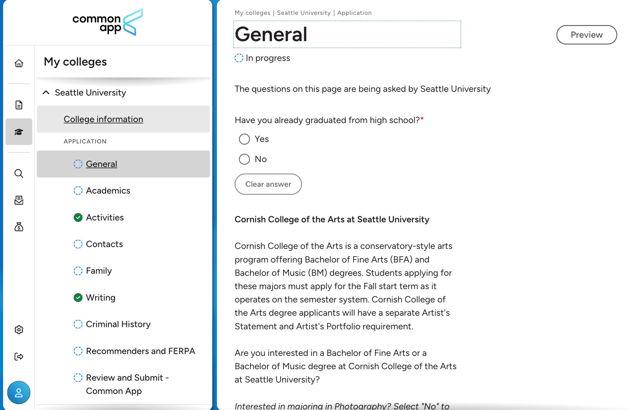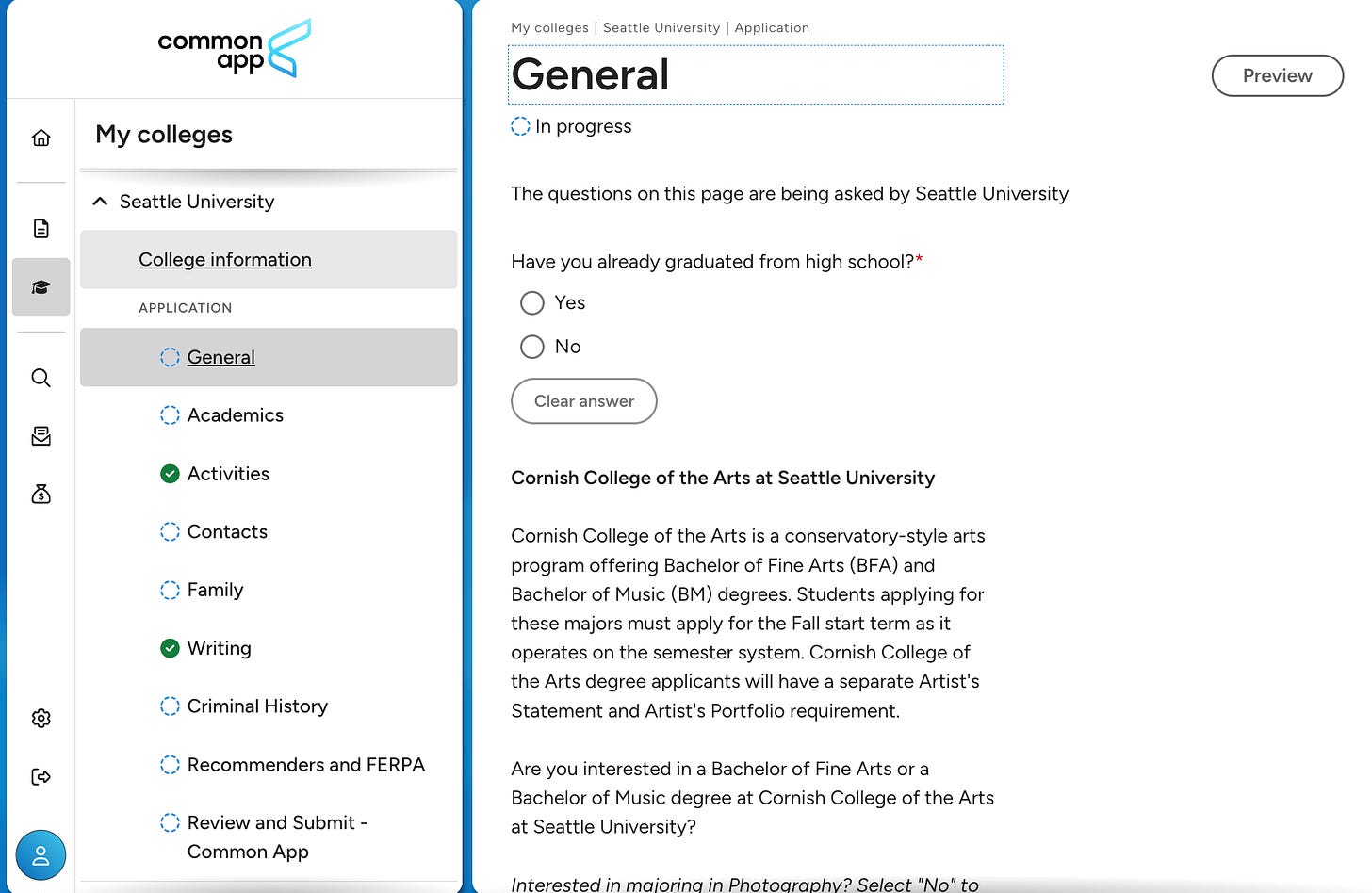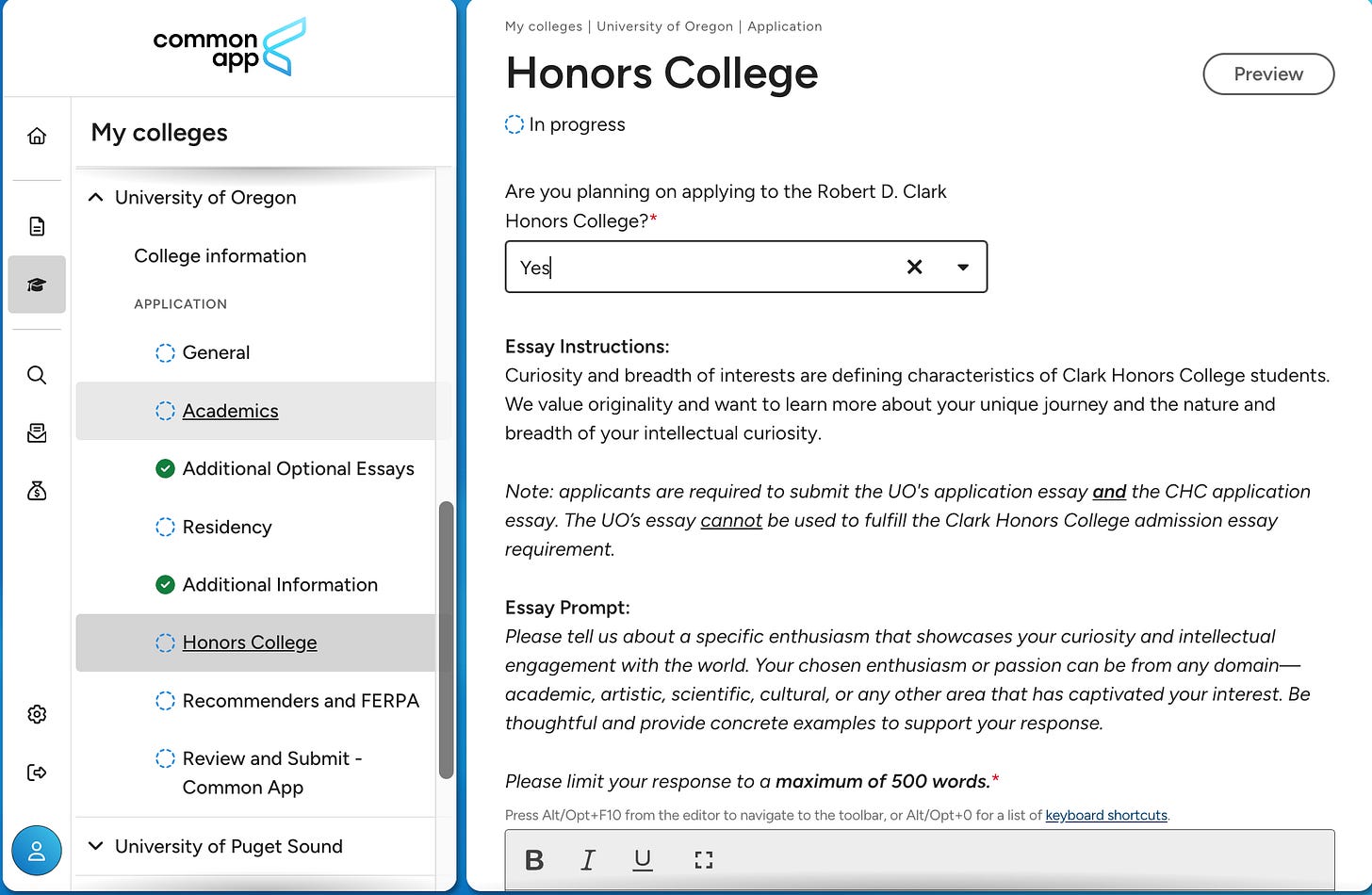 Each college or university you add to your ‘My Colleges’ list will have a set of unique questions you complete as part of your application to that school.