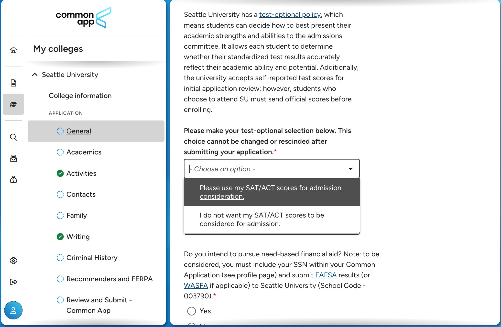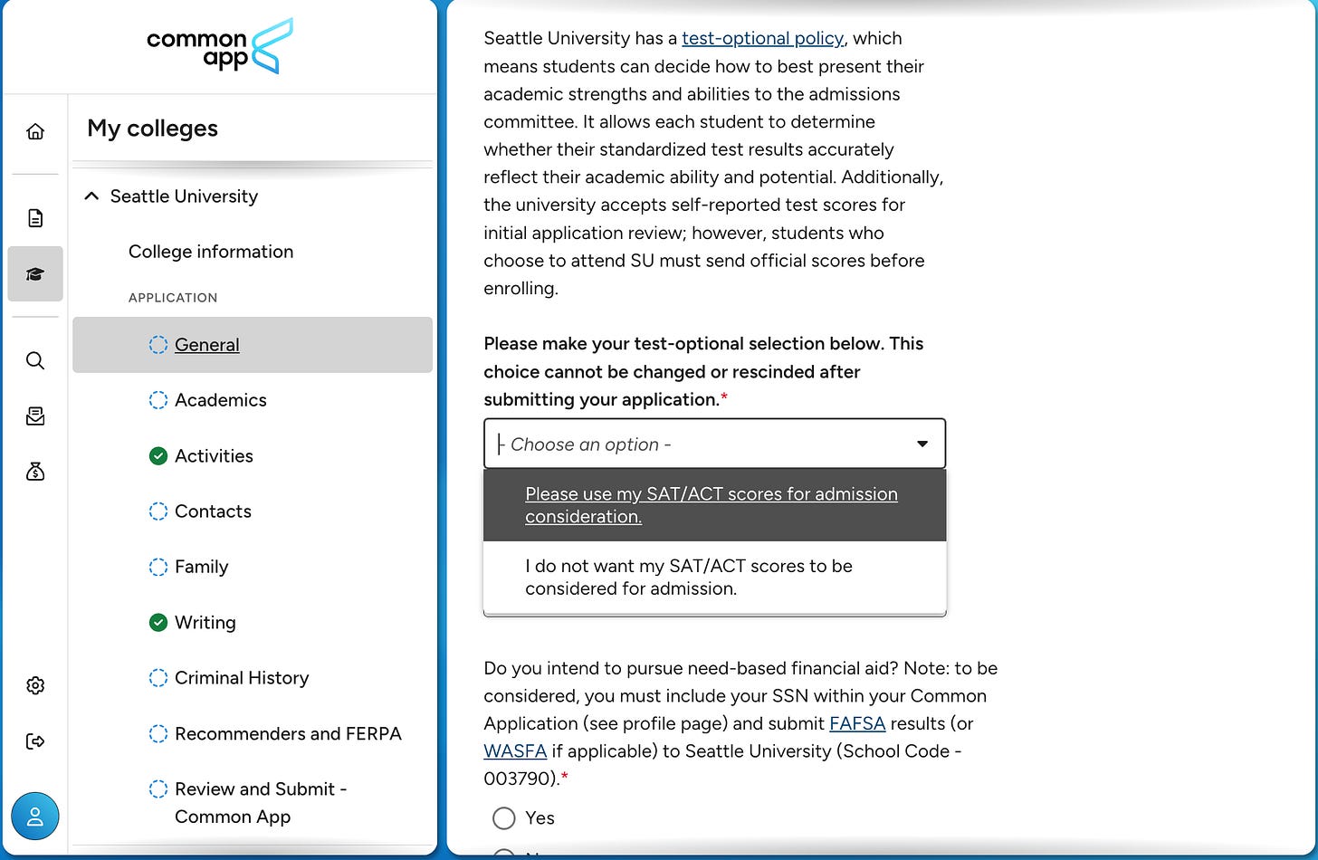 You can also self-report your scores by entering them into the ‘Testing’ section of the Common App.