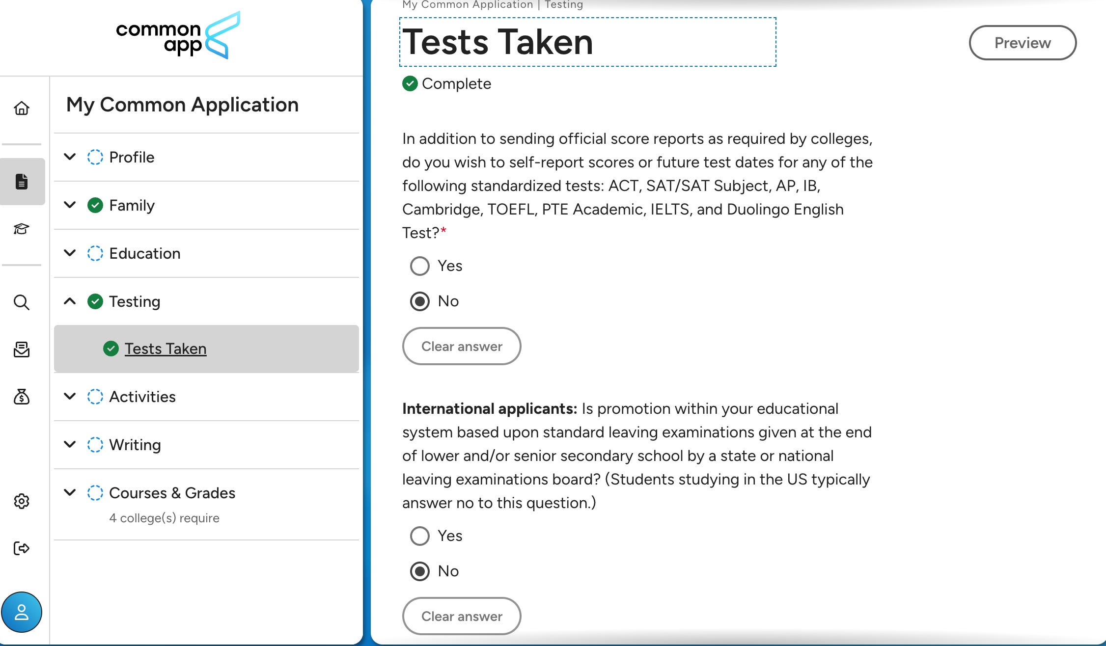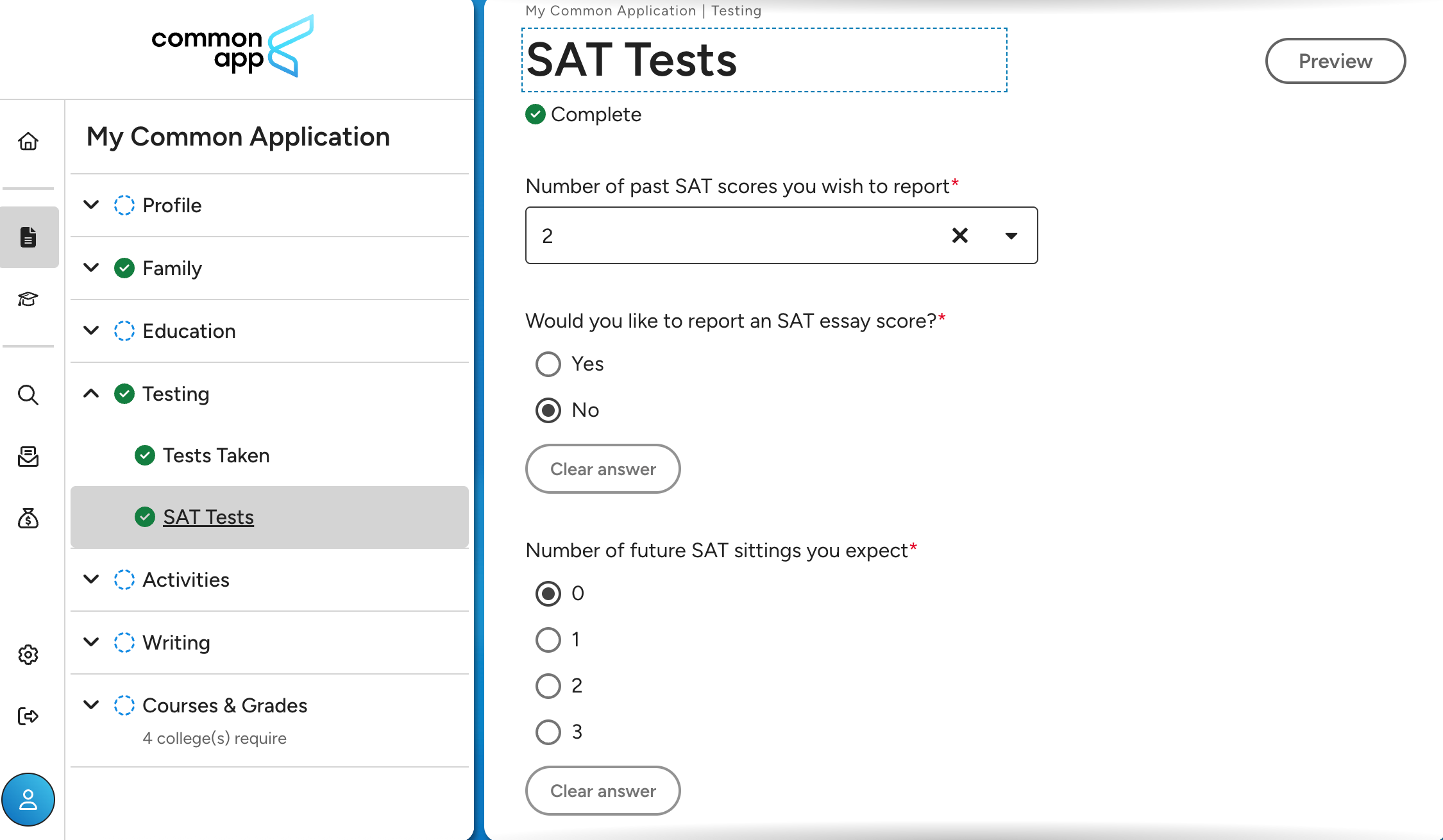 Common App Section by Section - Testing