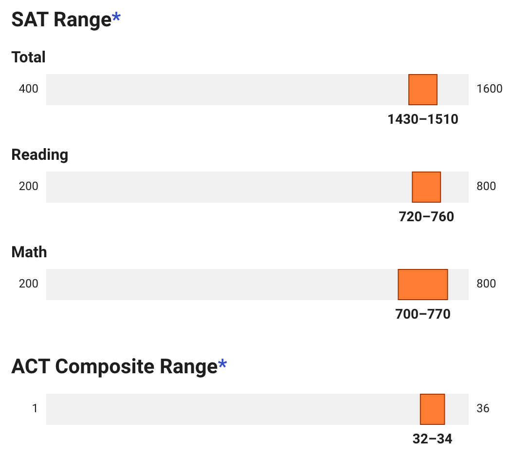 Nowadays, reported test scores skew higher almost everywhere. With test optional admissions, students who don’t score as well on the SAT/ACT simply choose not to submit their score, as including would detract from their application. What this means is that a minority of students choose to report their SAT/ACT score, and when they do it tends to be a very high score!