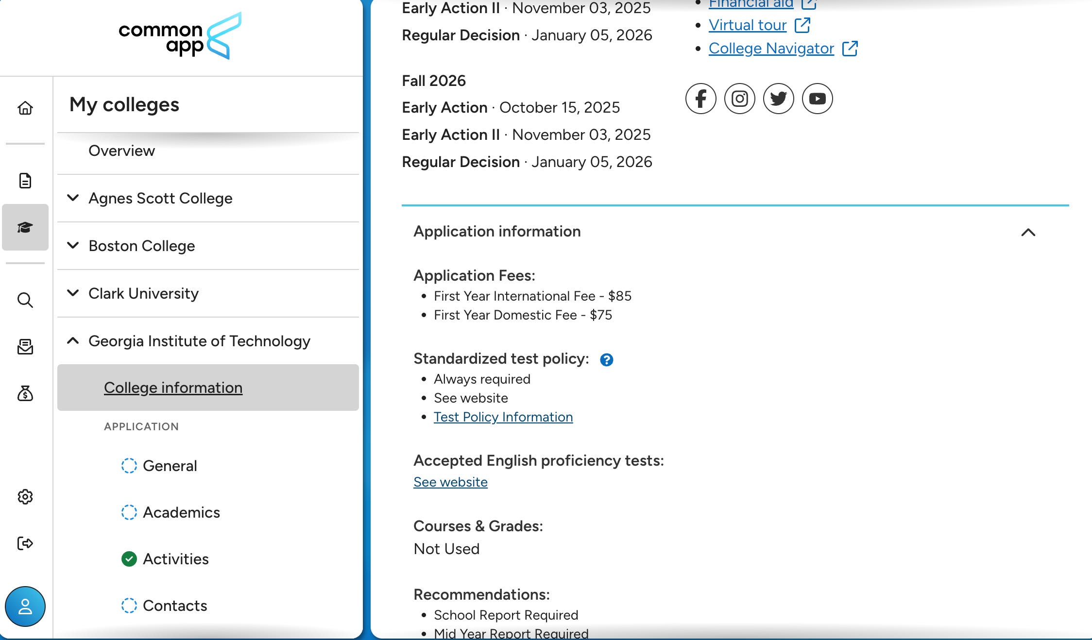 How do you know what a college’s testing policies are (test required, test optional, test blind) and whether or not they require official scores? Look for this info in the Common App.