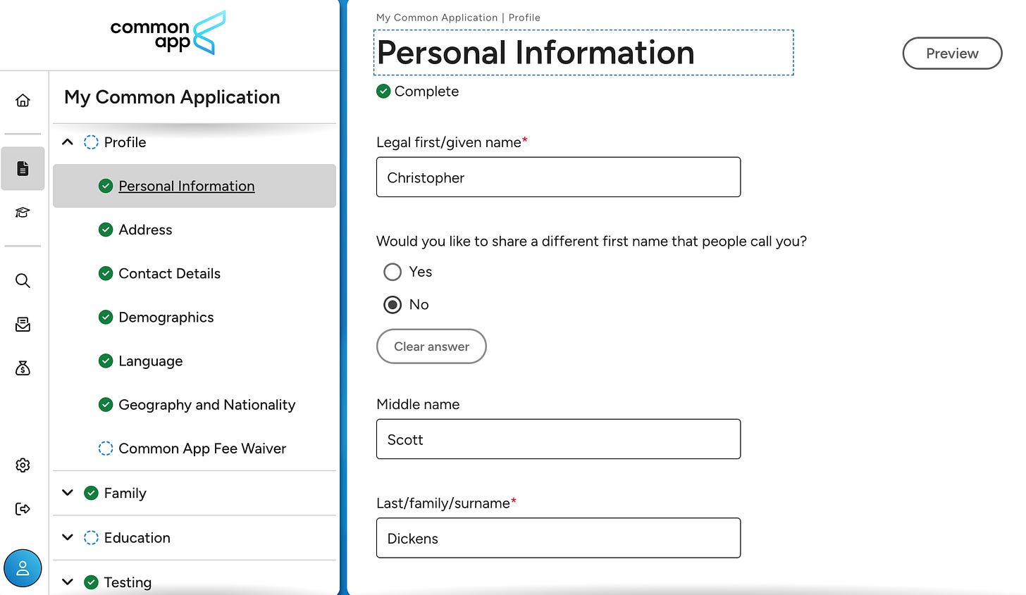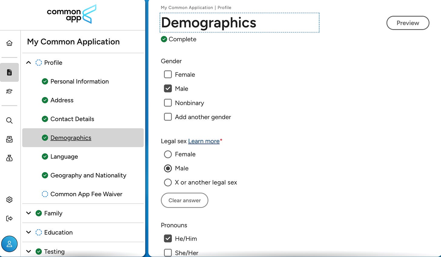 After you’ve finished creating your Common App account, the first step towards completing college apps is filling in the demographic information in your profile.