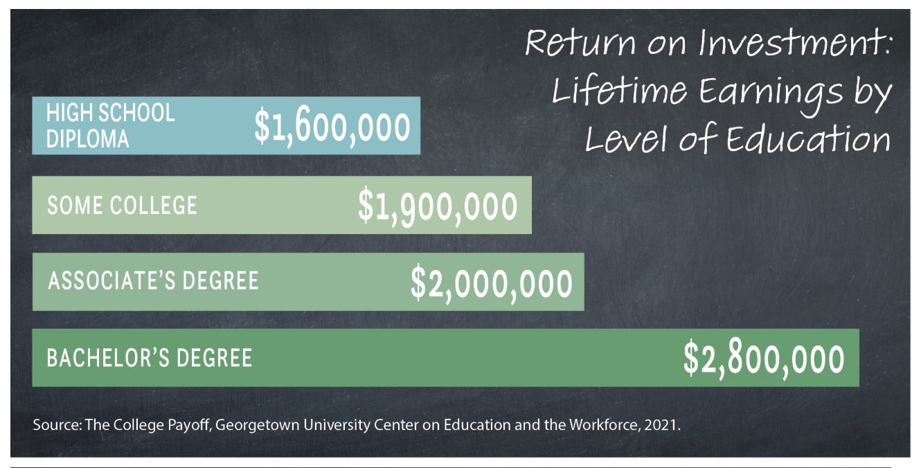 Earnings Potential: College grads earn significantly more—on average, about $1.2 million more over their lifetime—than those without a degree (source).
