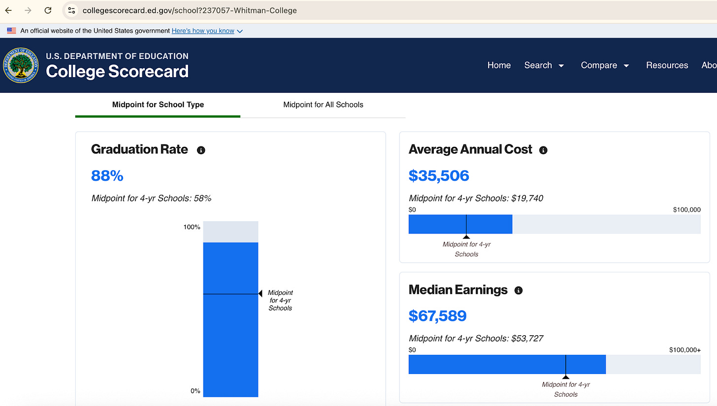 Managed by the Department of Education, College Scorecard lets you compare schools’ net prices alongside outcomes.